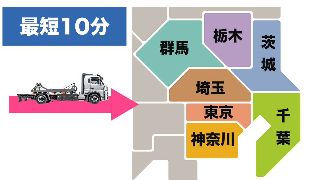 お電話いただいてから最短10分でお伺いさせて頂きます。 ※道路状況により前後する場合がございます。